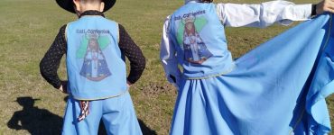El orgullo litoraleño brilla en Berisso: una joven pareja de danza lleva a la Virgen de Itatí en su espalda