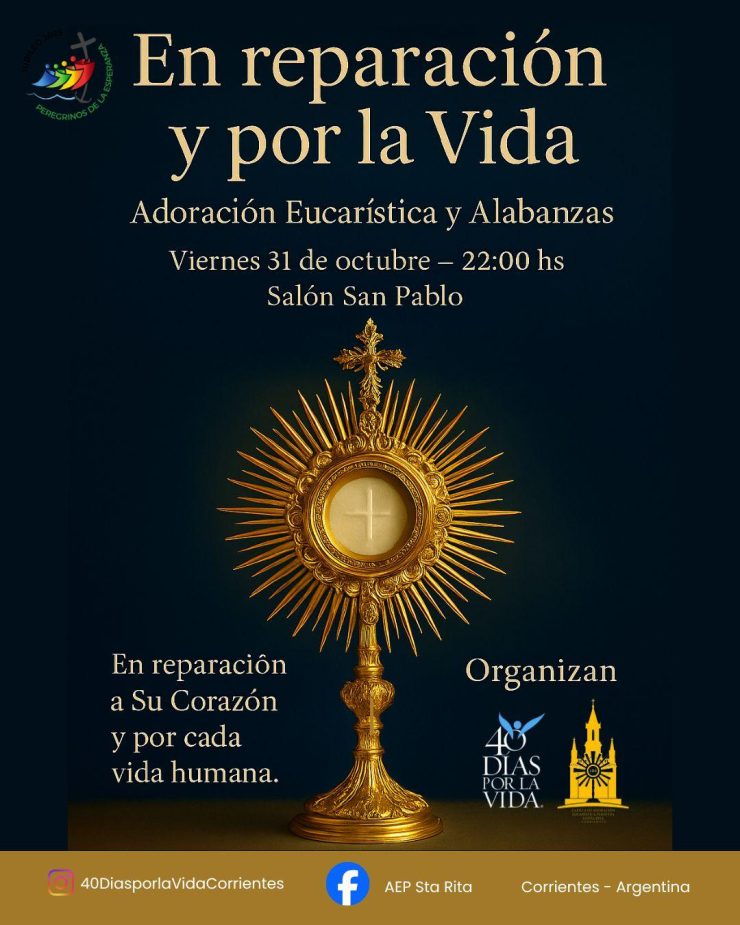 Este viernes 31 de octubre, la Iglesia Catedral de la ciudad de Corrientes invita a participar de una noche de adoración eucarística y alabanzas, en reparación al Corazón de Jesús y en defensa de toda vida humana.
