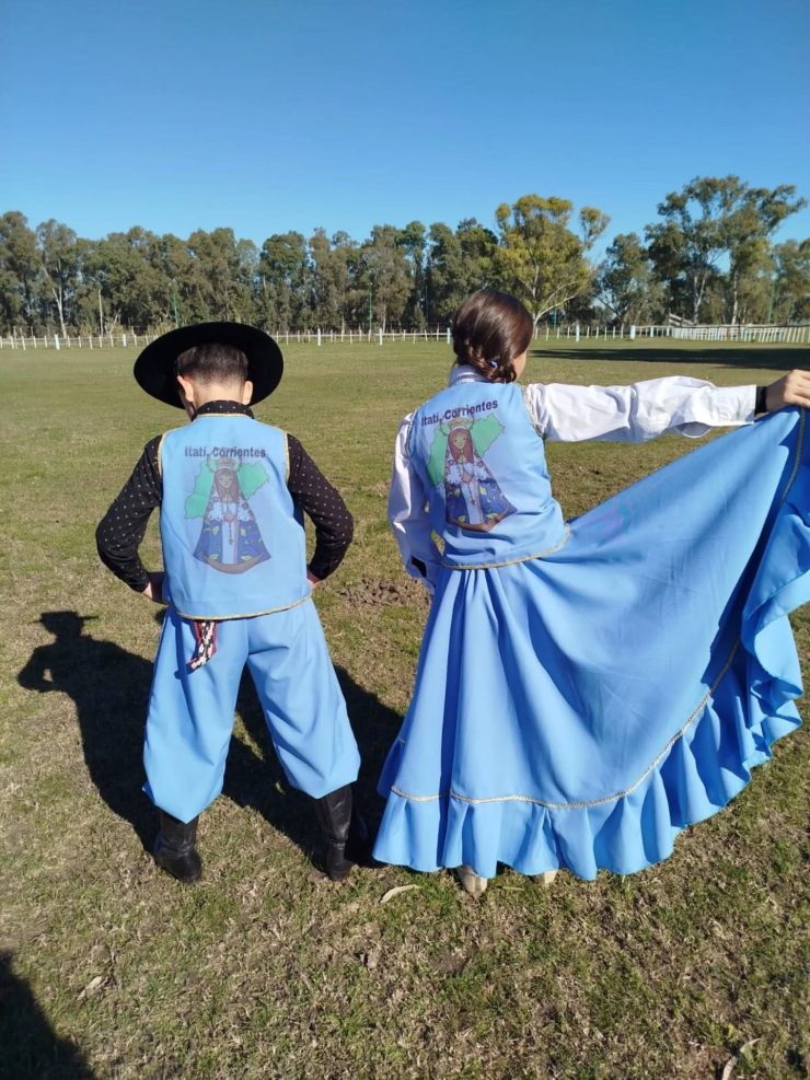Su vestuario es mucho más que una indumentaria de baile. Creado por su abuela, el traje combina los colores celeste y dorado de la Virgen de Itatí y lleva en la espalda una estampa bordada de la Patrona de Corrientes. Esta pieza única no solo ilumina los escenarios de Berisso, sino también peñas y presentaciones en otras ciudades, como Mar del Plata —donde interpretaron el Pericón Nacional— y Chascomús.