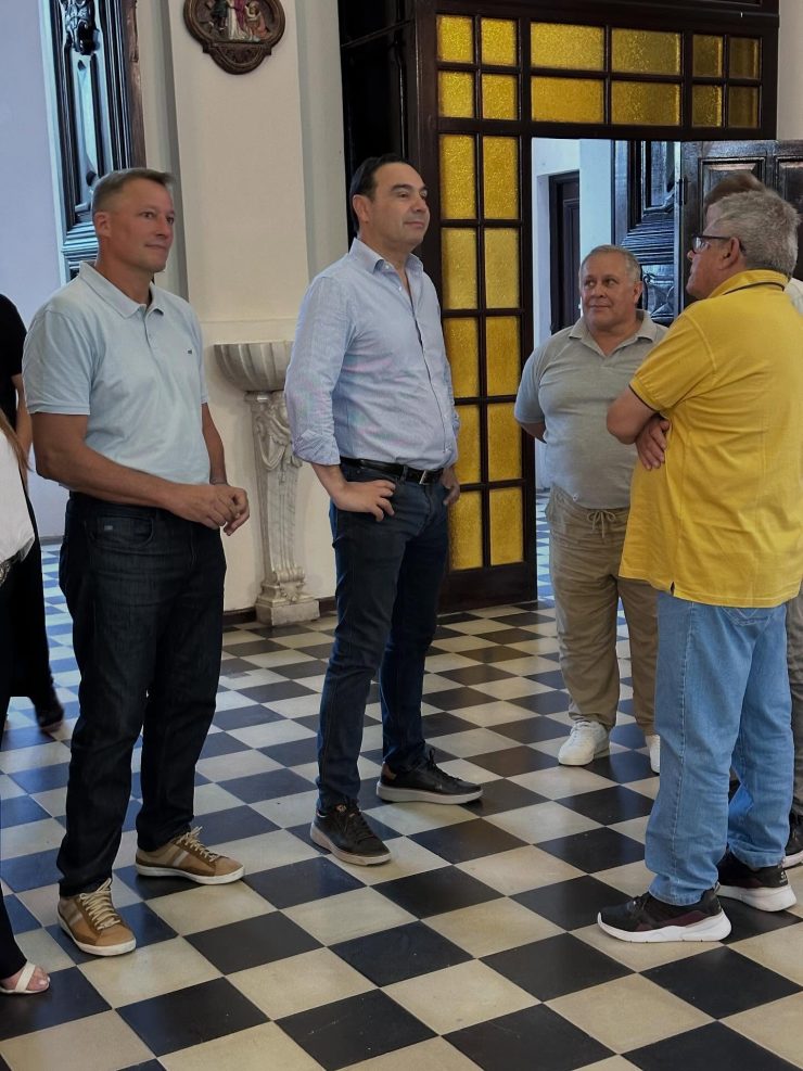 Durante la recorrida, el mandatario provincial observó los trabajos realizados en el histórico edificio religioso, que incluyeron la pintura integral del templo, la reparación de los desagües y el arreglo definitivo del techo, entre otras mejoras estructurales.