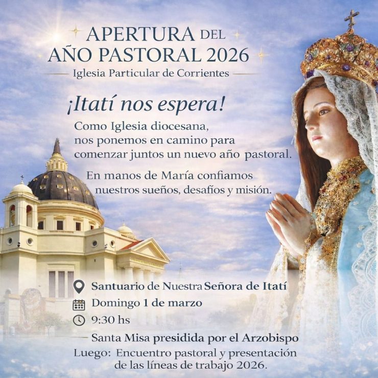 La Iglesia diocesana de Corrientes se prepara para dar inicio al Año Pastoral 2026 con una jornada de encuentro y celebración que reunirá a parroquias, movimientos e instituciones de toda la provincia. La actividad se realizará el domingo 1 de marzo en el Santuario de Nuestra Señora de Itatí.