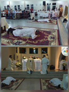 Durante el rito, Claudio y Walter expresaron su compromiso con Dios y la Iglesia y se postraron en el suelo como signo de entrega total. Luego, el arzobispo realizó la imposición de manos y la plegaria de ordenación, invocando el don del Espíritu Santo para el nuevo ministerio.
