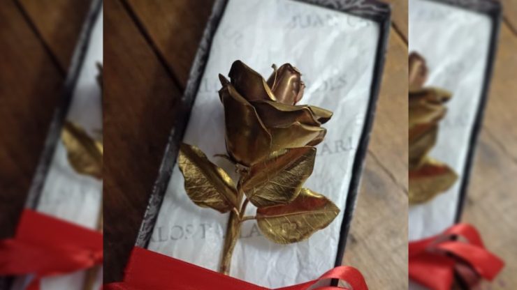 La “Rosa de la Paz” será una obra confeccionada con restos de balas provenientes de las Islas Malvinas, Ucrania y Oriente Medio, y representará un símbolo de reconciliación, unidad y esperanza en tiempos de conflicto. La pieza será bendecida durante la ceremonia y colocada como ofrenda ante la Virgen.