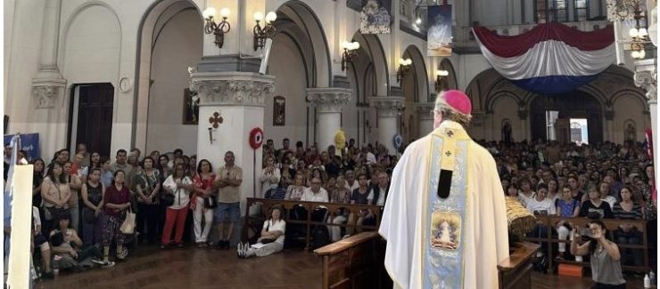 Ante un templo lleno, con gran presencia de fieles de la comunidad paraguaya, el arzobispo presidió el 8 de diciembre la misa concelebrada con el párroco, presbítero Eusebio Hernández, y otros sacerdotes, y luego encabezó una procesión por calles del barrio.