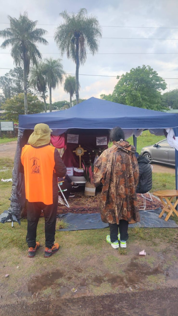 La lluvia, lejos de ser un impedimento, fue asumida como un signo de purificación y bendición. “Es agua que nos refresca, que nos limpia y que también es vida”, destacaron. ¡Es bendición”, dijo el arzobispo de Corrientes.