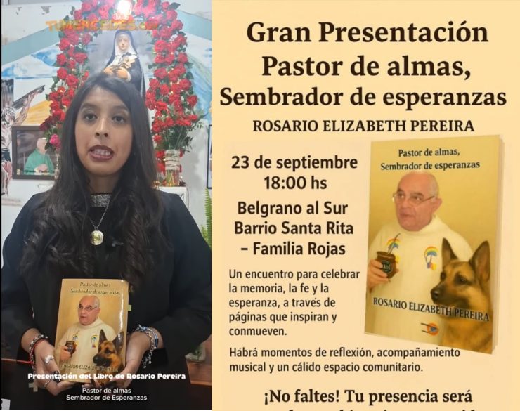 Mercedes, Corrientes – En el marco de la novena patronal que peregrinó bajo el lema “Con María queremos ser peregrinos de esperanza”, la escritora Rosario Elizabeth Pereira presentó el pasado domingo, a las 18 horas, su tercer libro titulado “Pastor de almas, sembrador de esperanzas”. La actividad tuvo lugar en la ciudad de Mercedes y convocó a miembros de la comunidad, fieles y lectores.