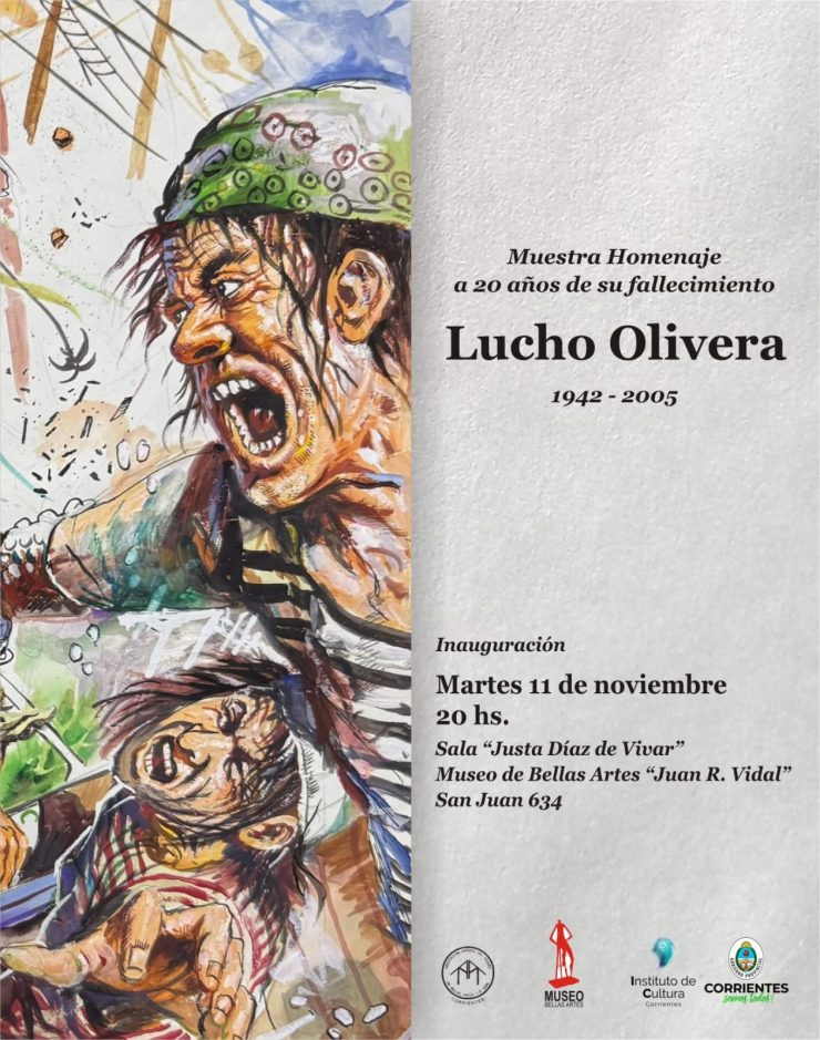El Instituto de Cultura de Corrientes invita a la inauguración de la muestra homenaje al historietista correntino Lucho Olivera, al conmemorarse 20 años de su fallecimiento (1942-2005). Se realizará este martes 11 de noviembre, a las 20, en la sala Justo Díaz de Vivar del Museo de Bellas Artes Juan Ramón Vidal (San Juan 634).